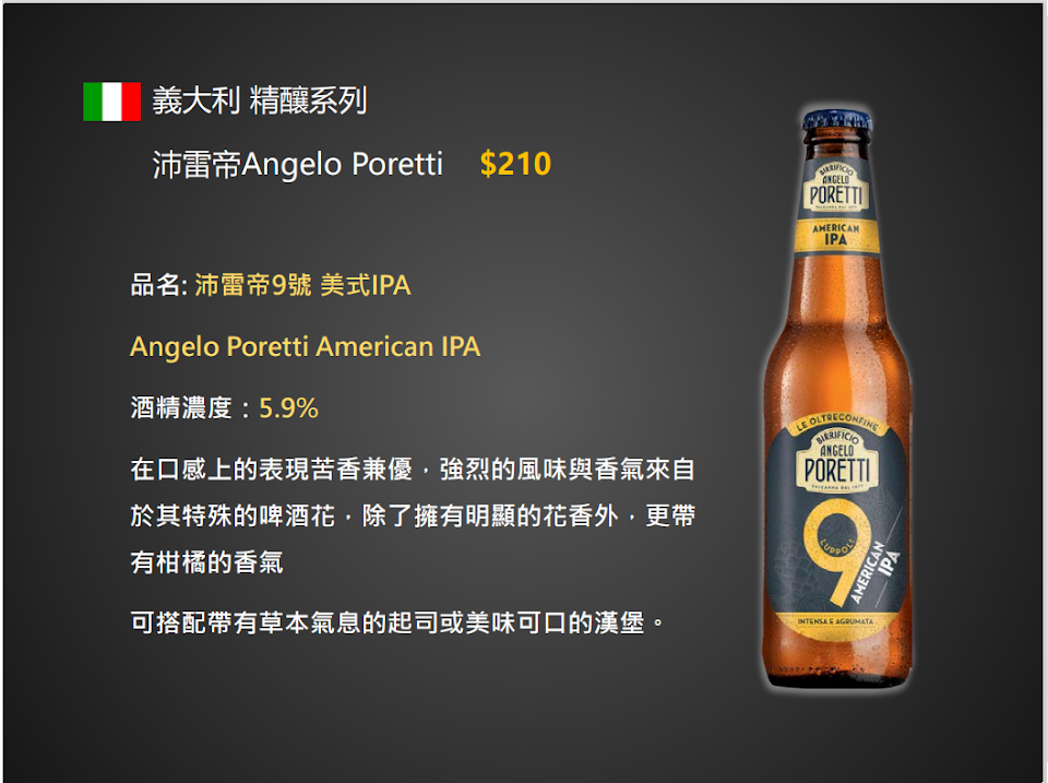 桑格利亞 4.2/5 :西班牙水果酒,以大量水果加上紅、白酒(葡萄酒或白蘭地等)以及汽水或氣泡水調製而成的水果酒,喝起來很清爽,水果味濃,有點氣泡或汽水的感覺,夏天喝很涼爽,也不會有苦苦的味道,反而甜甜的,當然還是有點酒味,但不重,畢竟酒精濃度不高,不喝酒的人或可嘗試看看。