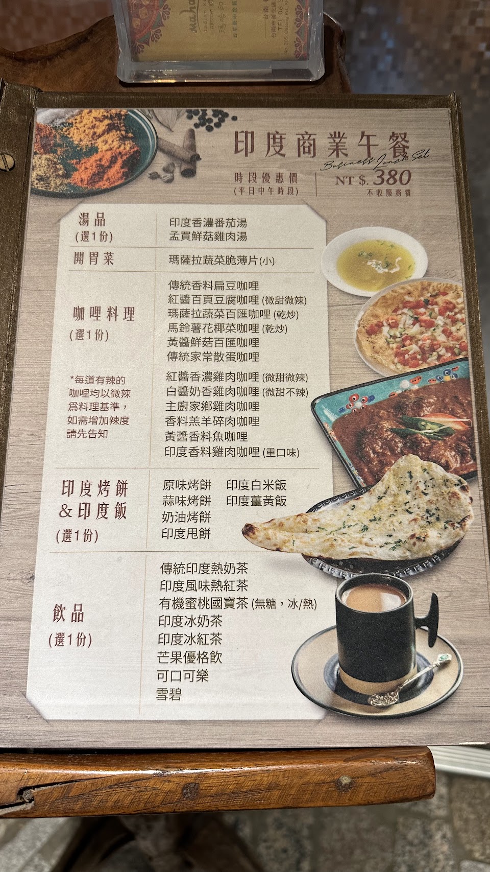 咖哩選擇很多也有蔬食的咖哩,從湯品前菜到咖哩、烤餅、飲料都有~
