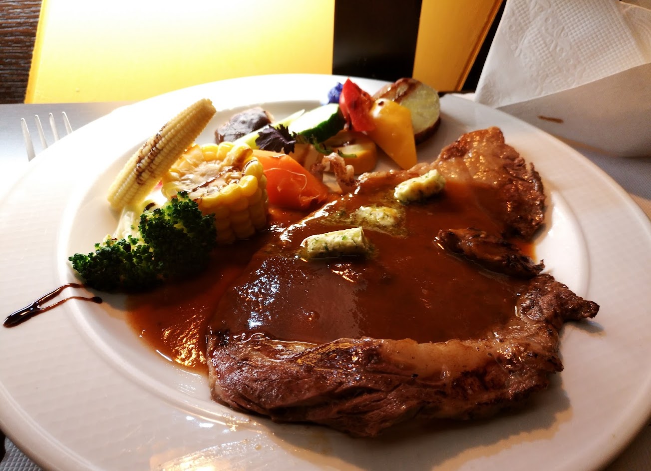 第一次來的時候,因為當時店面只有現在的一半,且招牌不顯眼,開車來回幾趟還沒發現他們的位置,好不容易找到後,卻發僅有一扇約90公分的單開門,當初還在猶豫是不是找錯地方,該不該進去?現在又有咖啡吧檯,紅酒櫃,前菜的生菜沙拉使用當令食材,所以每次來菜色都有點不一樣,使用和風口味基礎調味醬,爽口又不負擔,個人評價頂級,南瓜濃湯香郁不膩,烤麵包香味十足,外酥內軟,牛排口味不錯,豬肋排軟嫩稍甜,起司魚排小孩很愛,德國豬腳皮酥肉有嚼勁,整體CP值各人給5星評價,如果小弟的評論對您有幫助,請不吝按個喜歡,支持小弟提供更多的分享哦^^~
