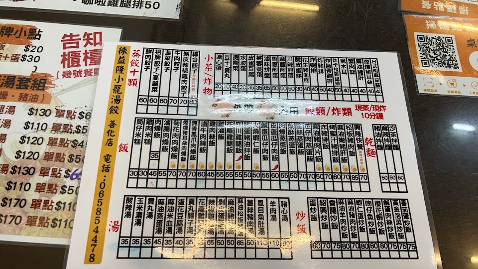 2024最新在地推薦餐廳的菜單_徠益隆 小籠湯餃(善化店)的菜單、圖片