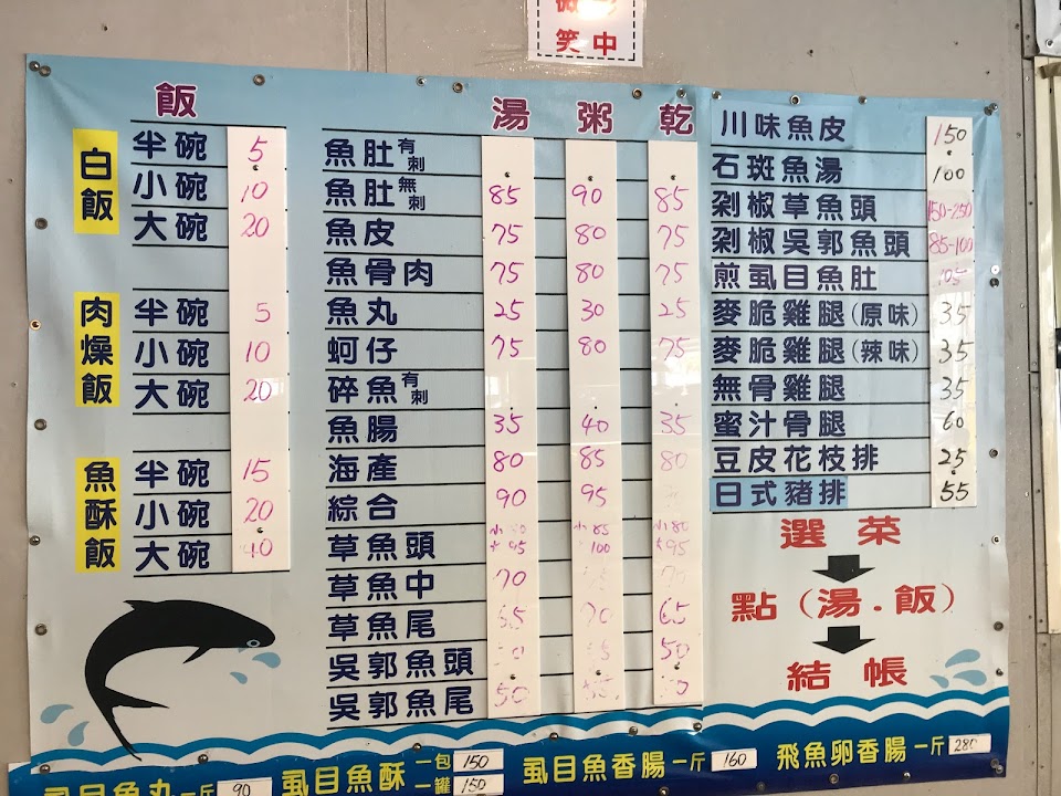 虱目魚肚,草魚粥等產品比市區平價,其它各種配菜也算便宜,口味不錯,有到此地旅遊的話可以轉進來品嚐一下填飽肚子。