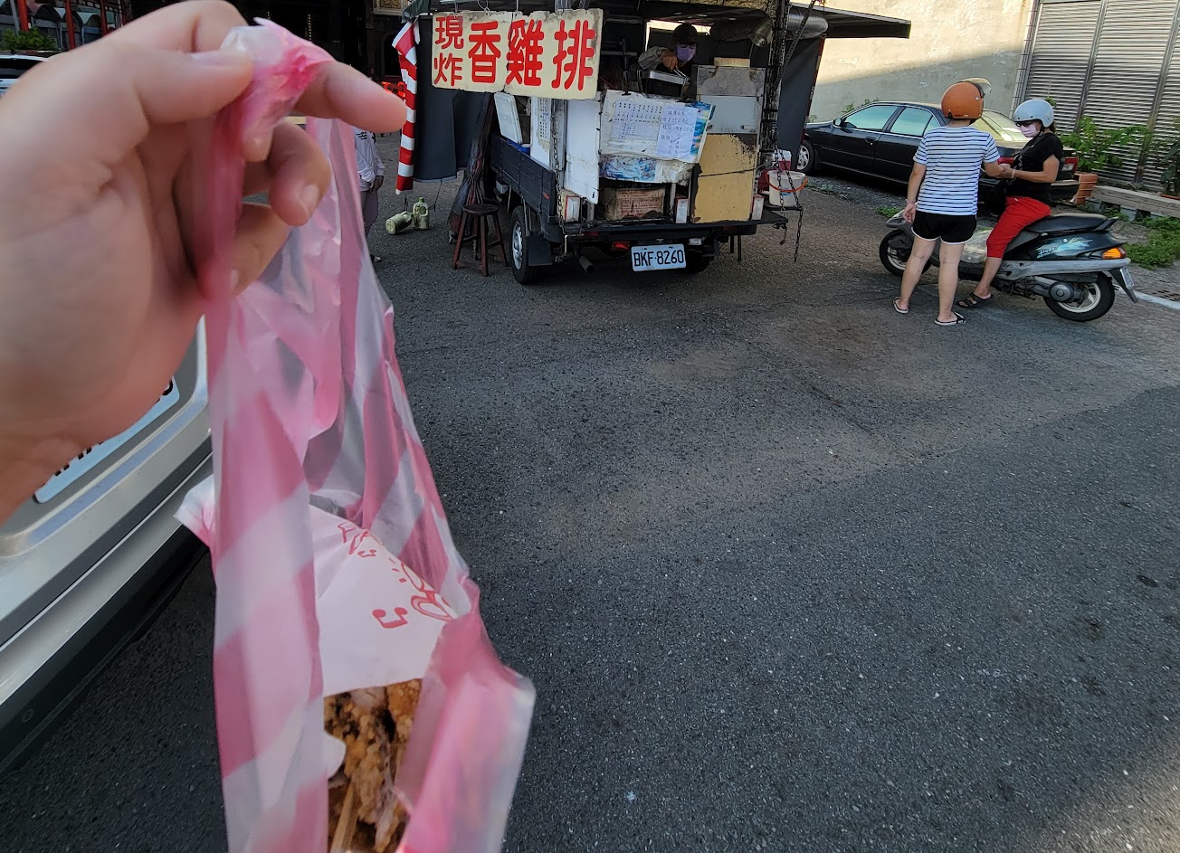 台南鄉下的炸雞排,就在廟前,開車也很好停車,等的時候還可以順便拜拜,雞排便宜好吃,才45塊而已。