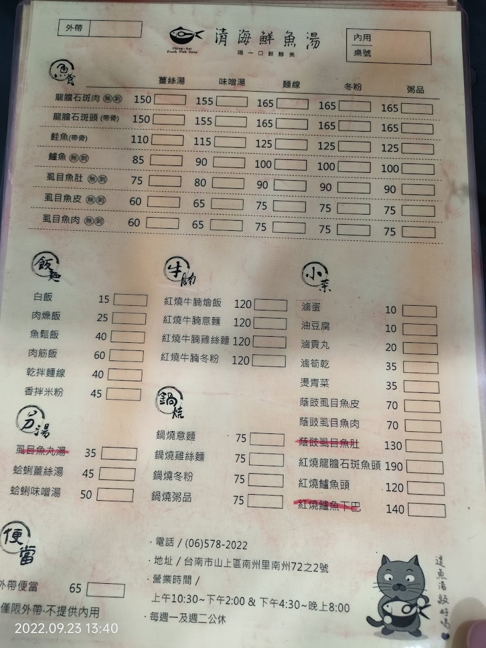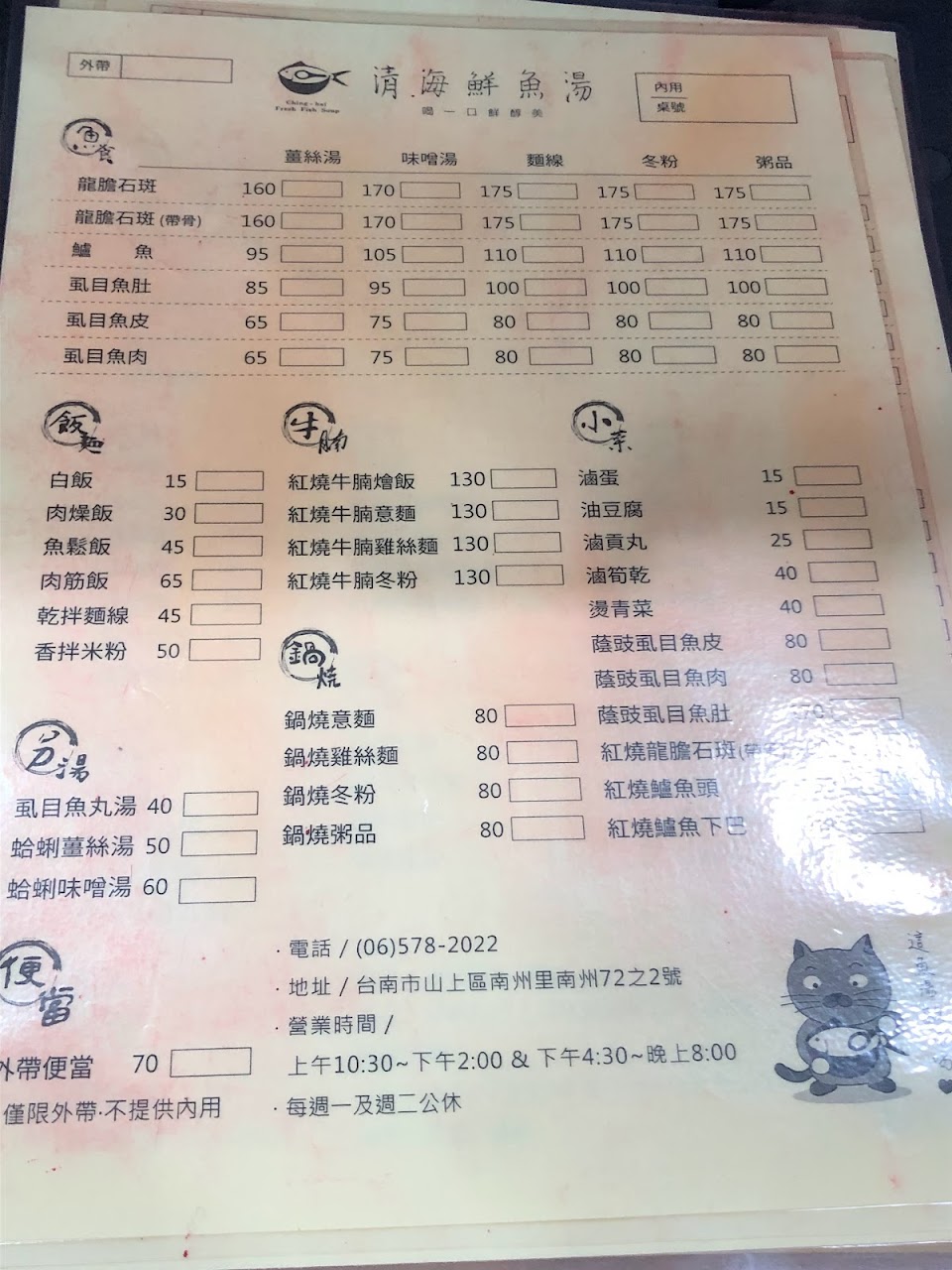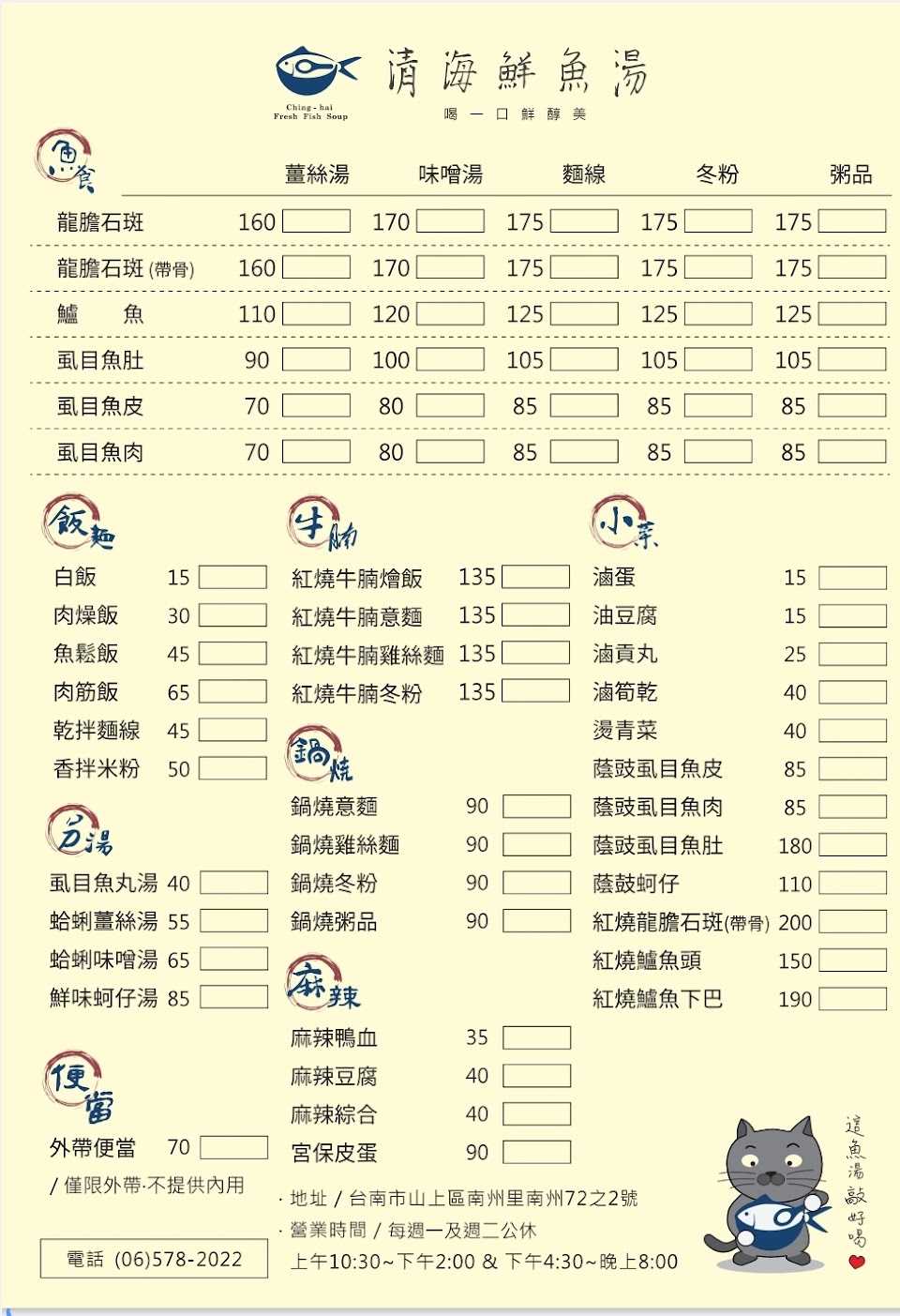 2024最新在地推薦餐廳的菜單_清海鮮魚湯的菜單、圖片