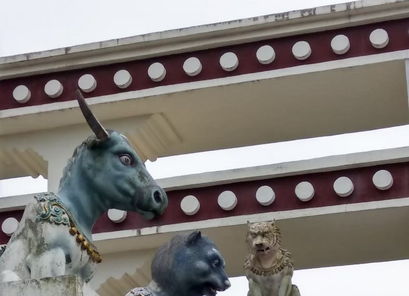大殿的十八銅柱,承襲古印度阿育王時代的佛柱造型並加以變化,象徵佛陀的 18種功德。