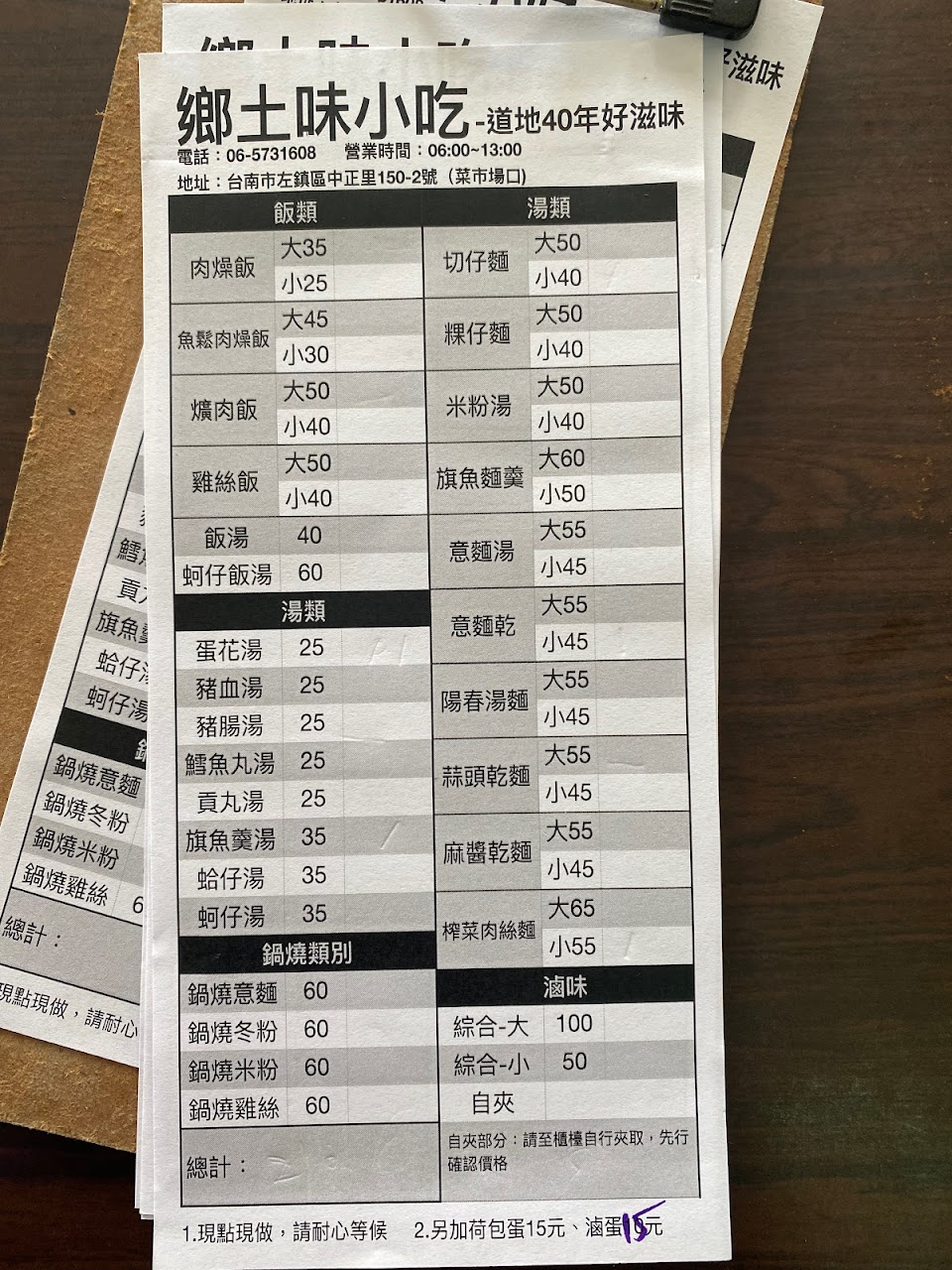 2024最新在地推薦餐廳的菜單_鄉土味小吃/左鎮最早的麵店/菜市場口/左鎮公有零售市場的菜單、圖片