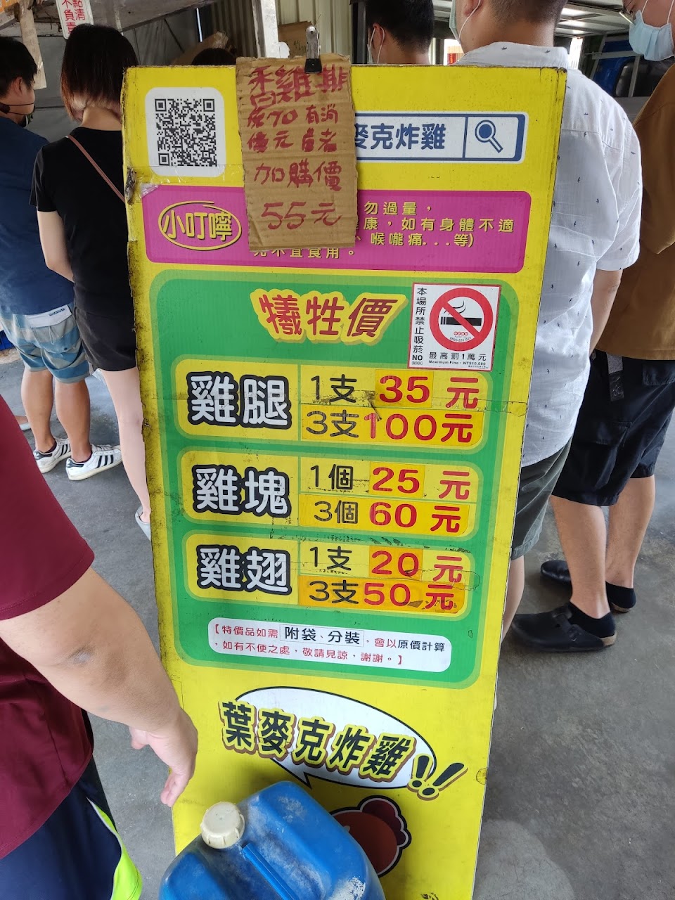 每次買必排隊~炸雞有雞腿雞塊雞翅,特別推薦他們家的地瓜薯條沾梅粉,熱熱的超好吃。