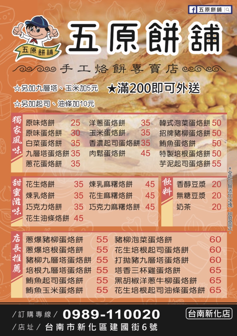 2024最新在地推薦餐廳的菜單_五原餅舖手工烙餅專賣店-新化店的菜單、圖片