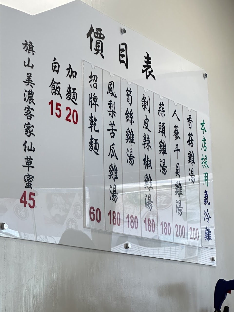 位子不大,但是雞湯好喝,老闆親切有禮,若有燙青菜會更好?
