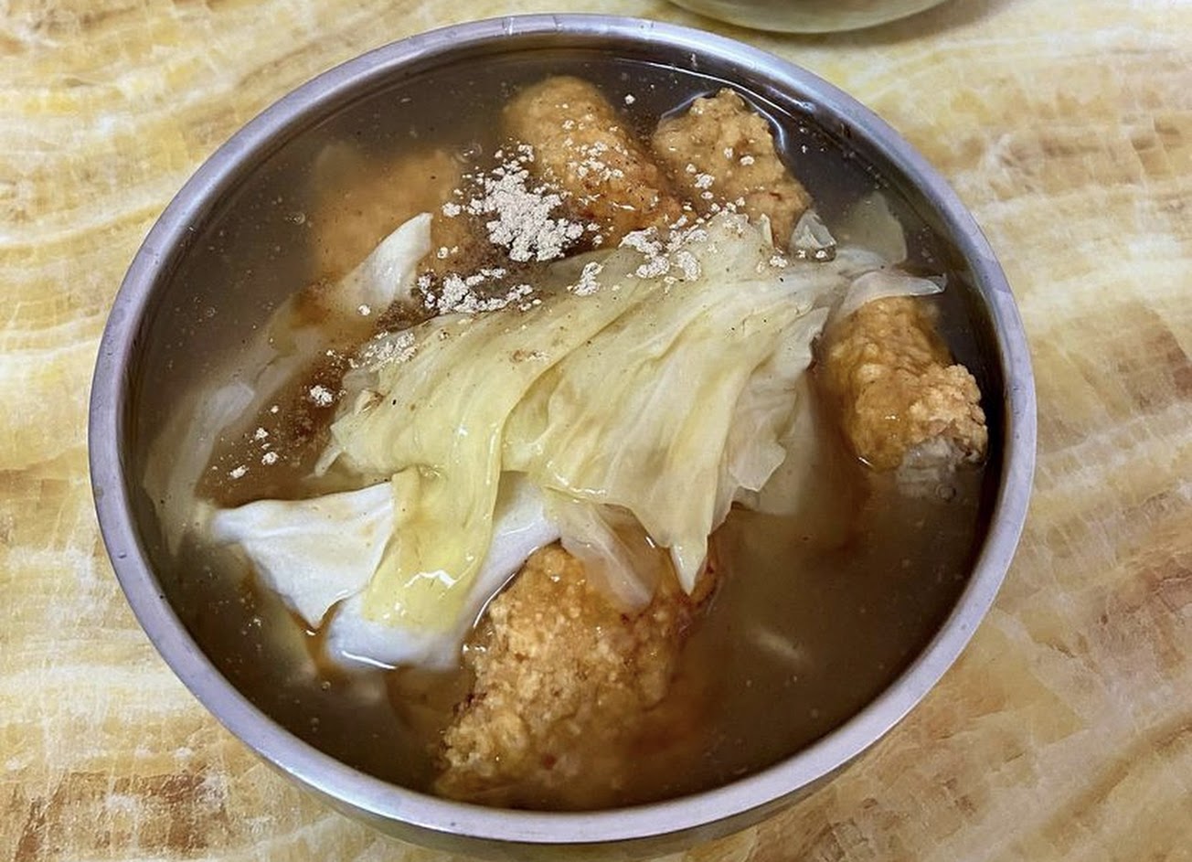 南部特有的甜口味,不加一絲香菜芹菜調味,只加一點點醋提味,湯頭濃稠香甜好吃。炸小卷大推啊,泡在羹湯裡面還是夠味好吃。
