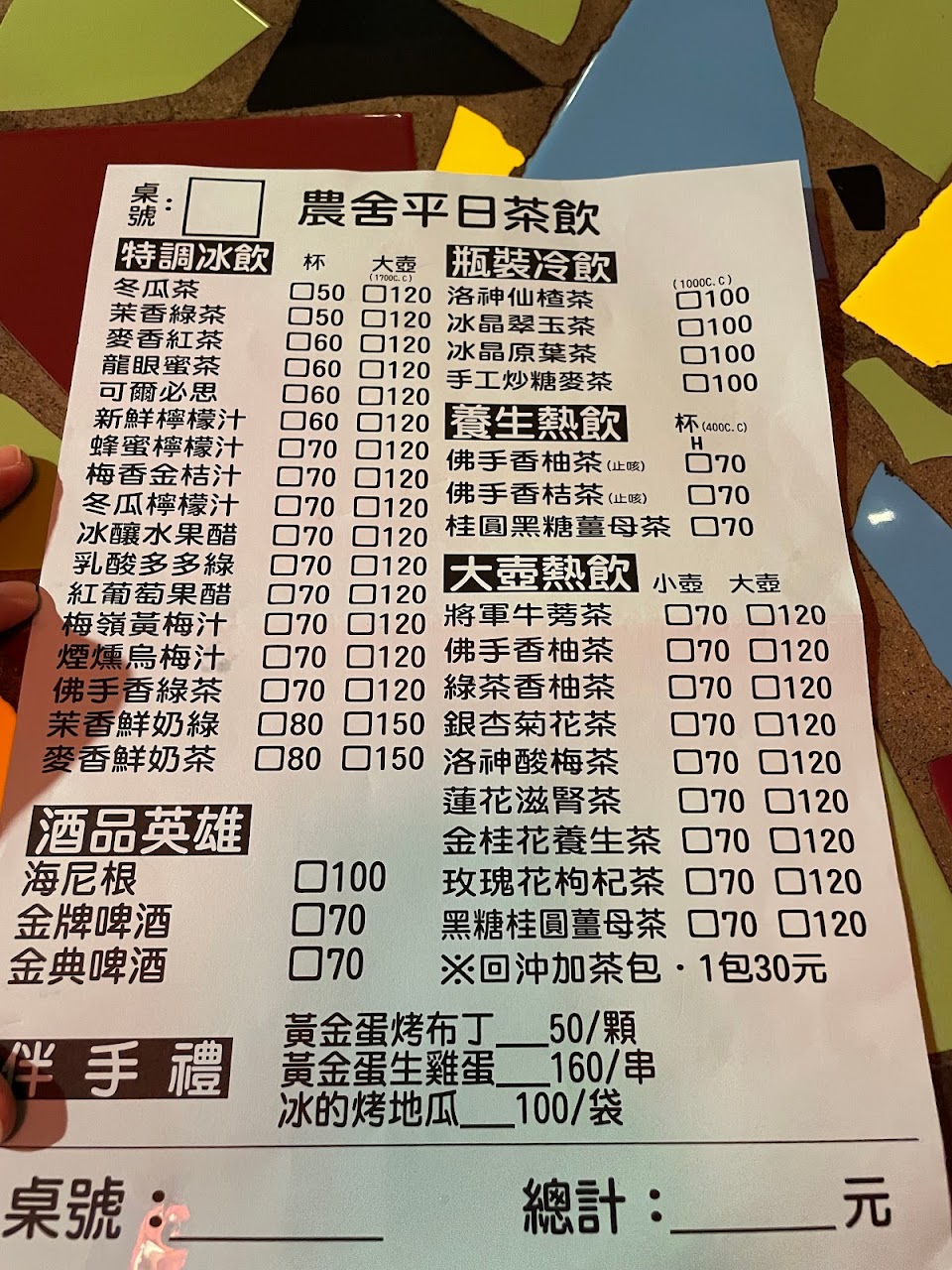 只直接給點合菜的菜單,