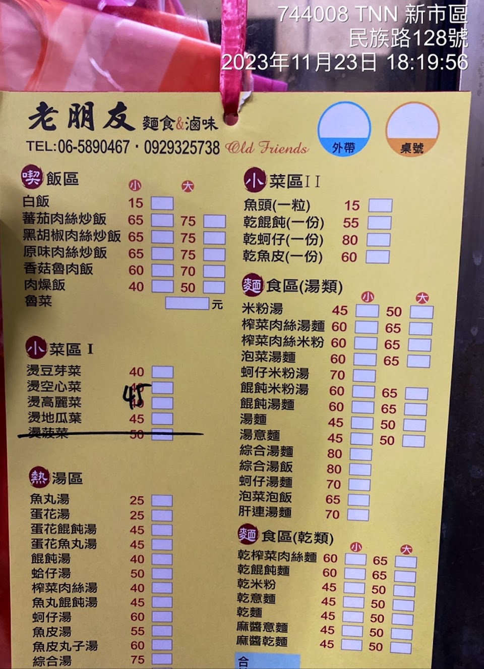 食材好吃,中午時常客滿,天氣熱時推薦滷菜及麵食比較容易下肚 服務 內用 餐點類型 午餐 平均每人消費金額 $1-200 建議的餐點 麻醬乾麵