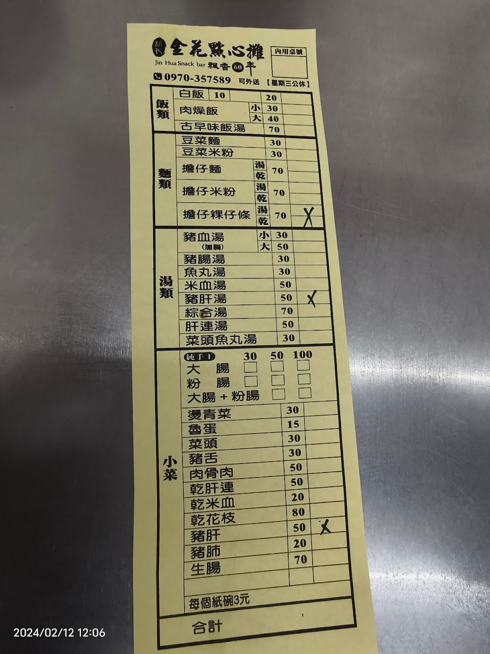 2024最新在地推薦餐廳的菜單_金花點心攤新市店的菜單、圖片
