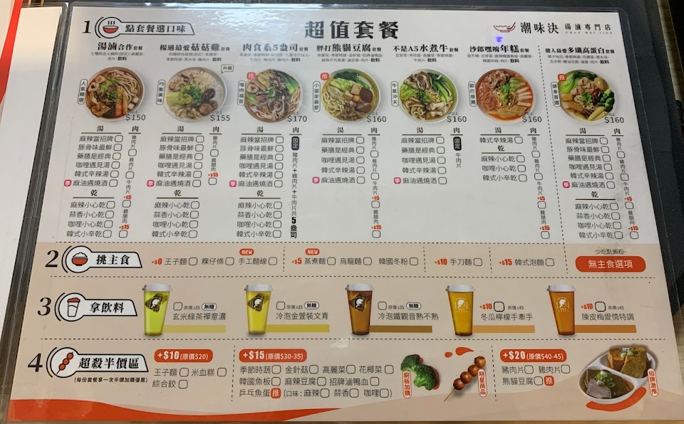 喝過黑椒跟番茄湯,兩種都很推!黑椒非常好喝、比較重口味,健康養生選番茄準沒錯!不油!洗筷子不用洗碗精那種?