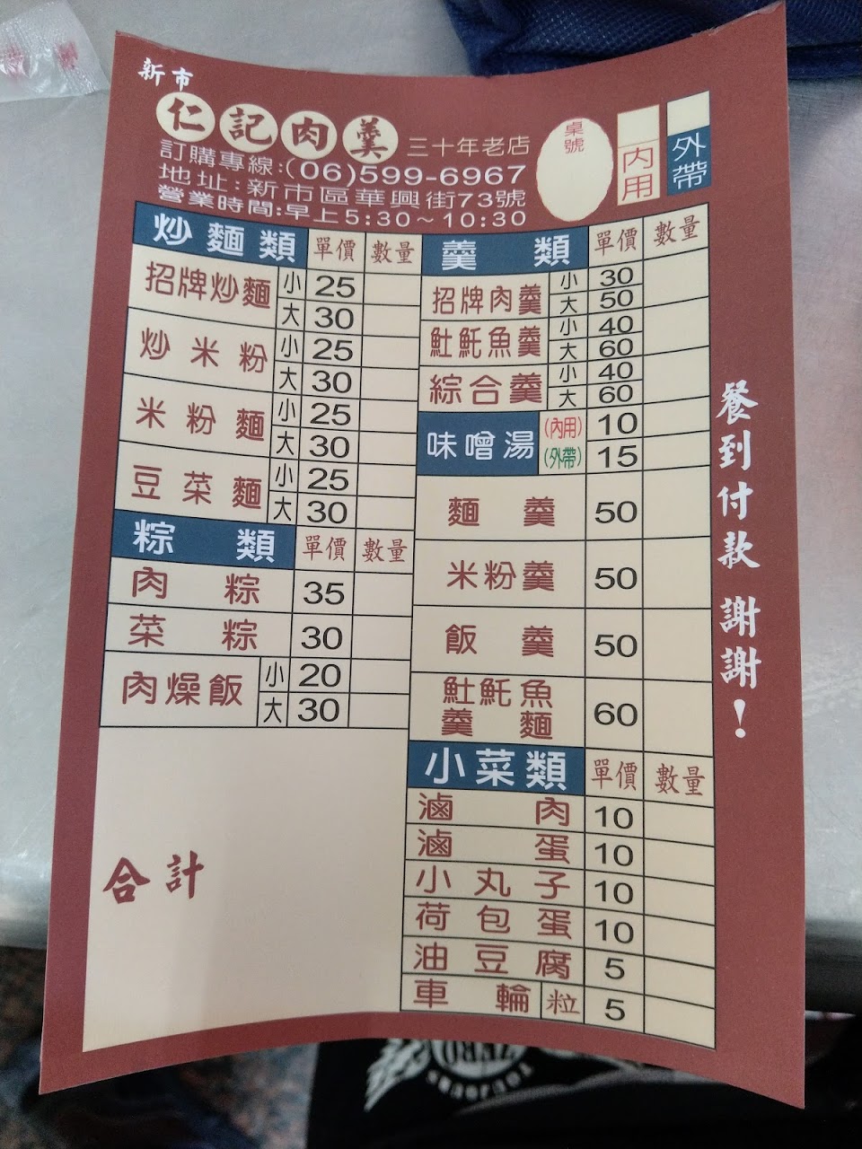 早上特地來新市嚐嚐30年老店,才7點門口就排起長長隊伍,初次來我也跟著一起排隊,到最後才發現,內用的直接入座即可不須排隊
