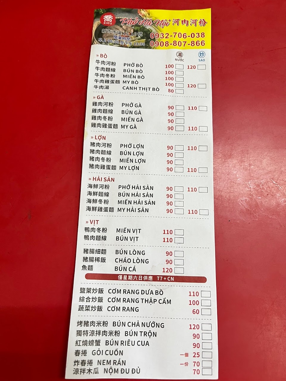 2024最新在地推薦餐廳的菜單_喬河內河粉的菜單、圖片