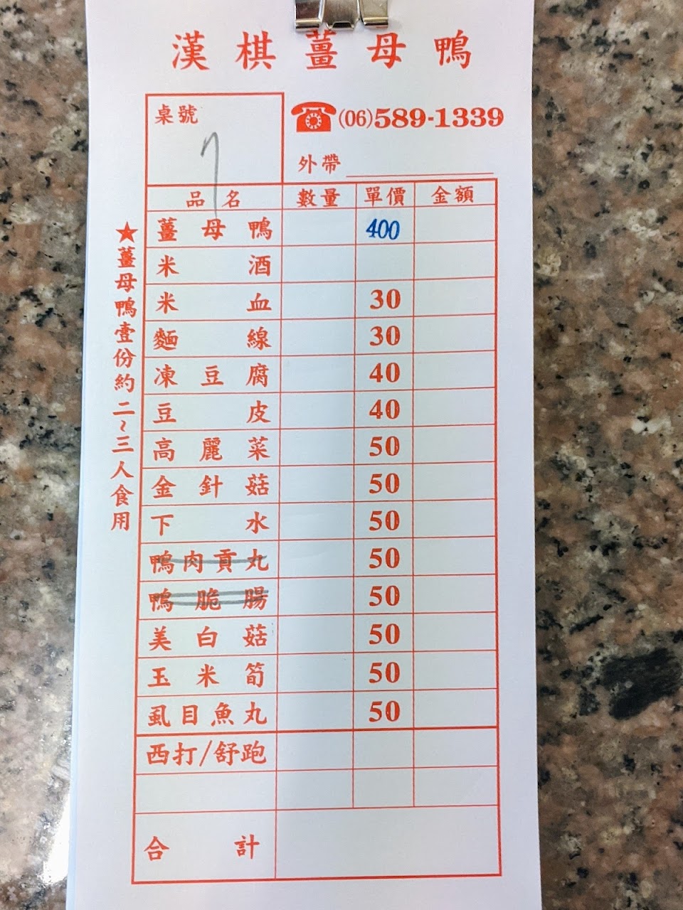 2024最新在地推薦餐廳的菜單_漢棋薑母鴨的菜單、圖片