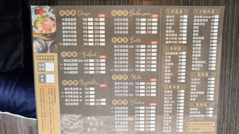 2024最新在地推薦餐廳的菜單_藝鍋物-新市店的菜單、圖片