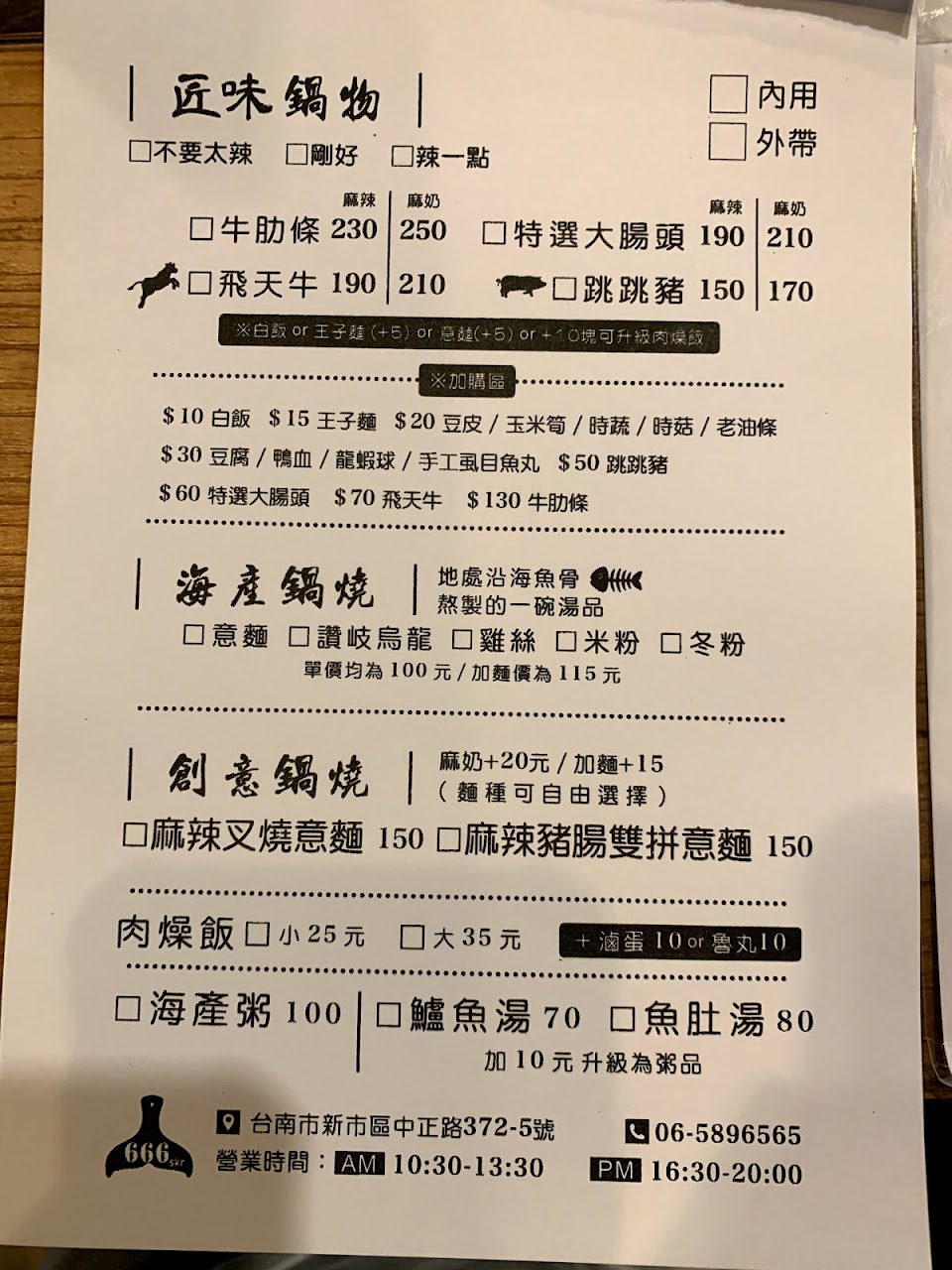 2024最新在地推薦餐廳的菜單_666skr匠味鍋燒的菜單、圖片