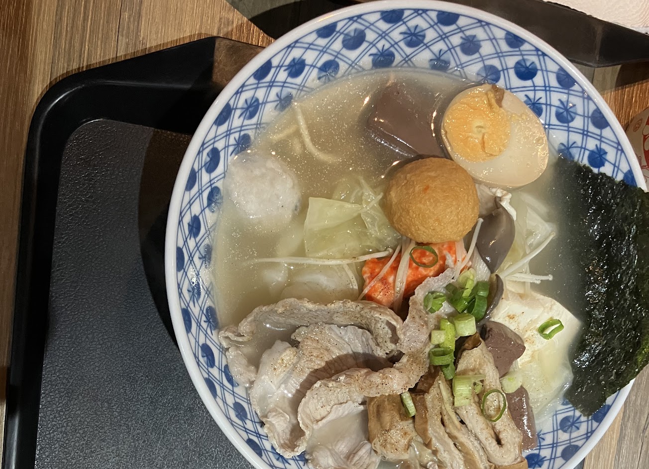 冬粉麵條軟硬適中!料很多,有肉片、蝦子、蛤蜊、魚片、很多菜、半熟蛋等等⋯,湯頭也很好喝,CP值非常高??大推!