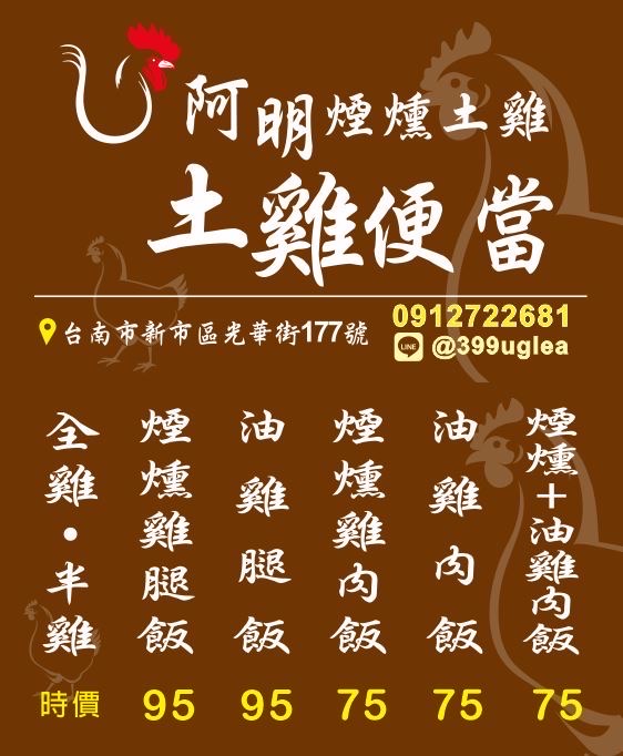 2024最新在地推薦餐廳的菜單_阿明煙燻土雞的菜單、圖片