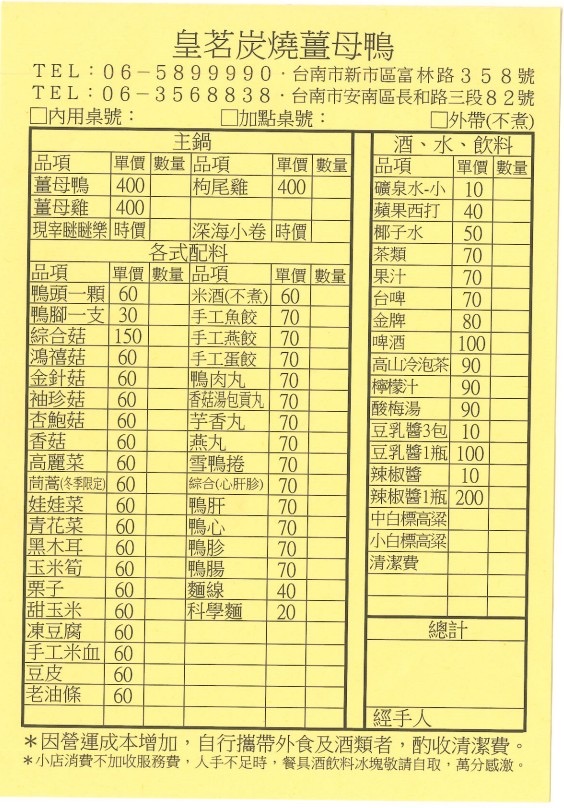 2024最新在地推薦餐廳的菜單_皇茗碳燒薑母鴨-台南新市店的菜單、圖片