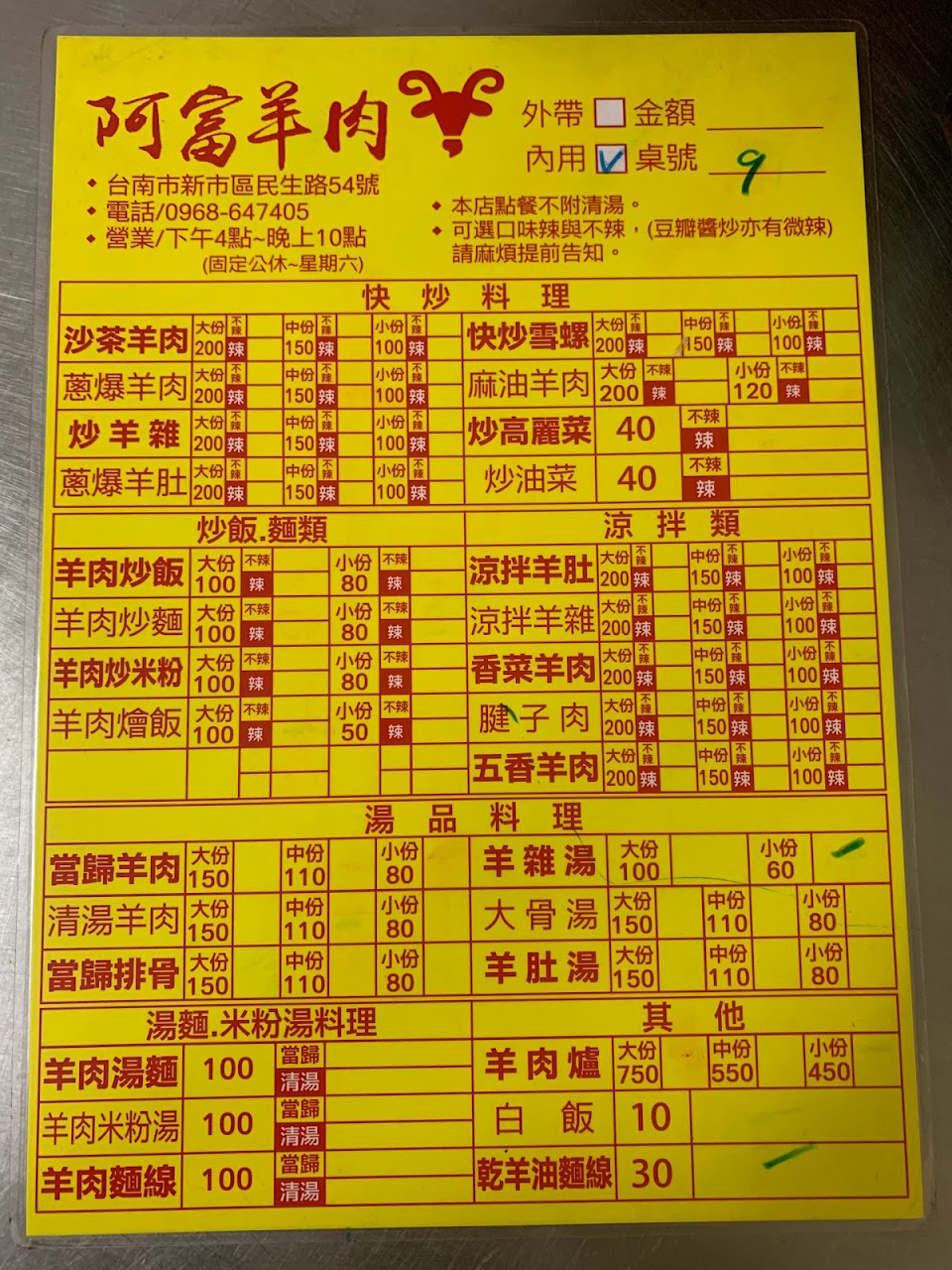 2024最新在地推薦餐廳的菜單_阿富羊肉的菜單、圖片