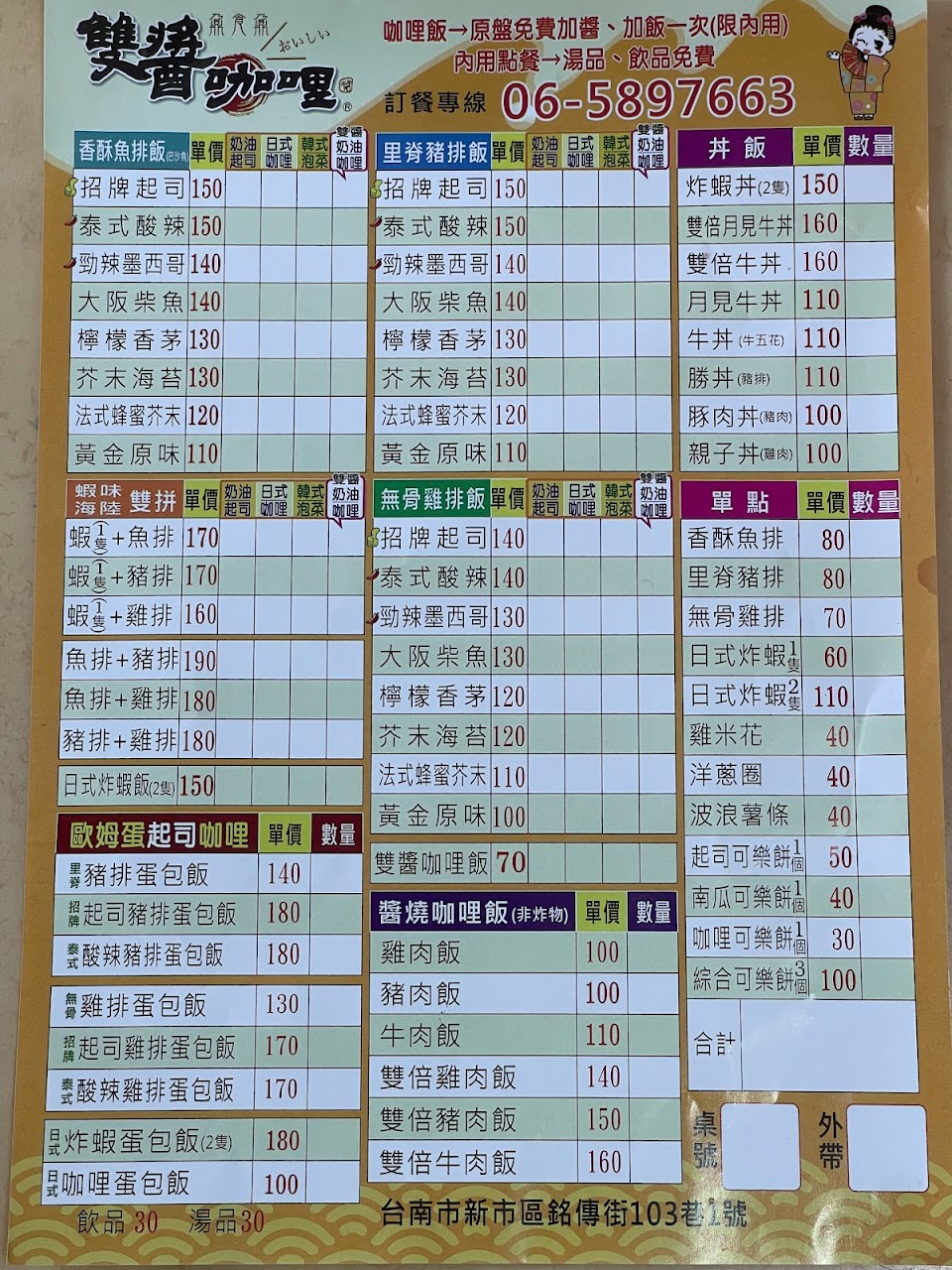 2024最新在地推薦餐廳的菜單_雙醬咖哩 – 新市店的菜單、圖片
