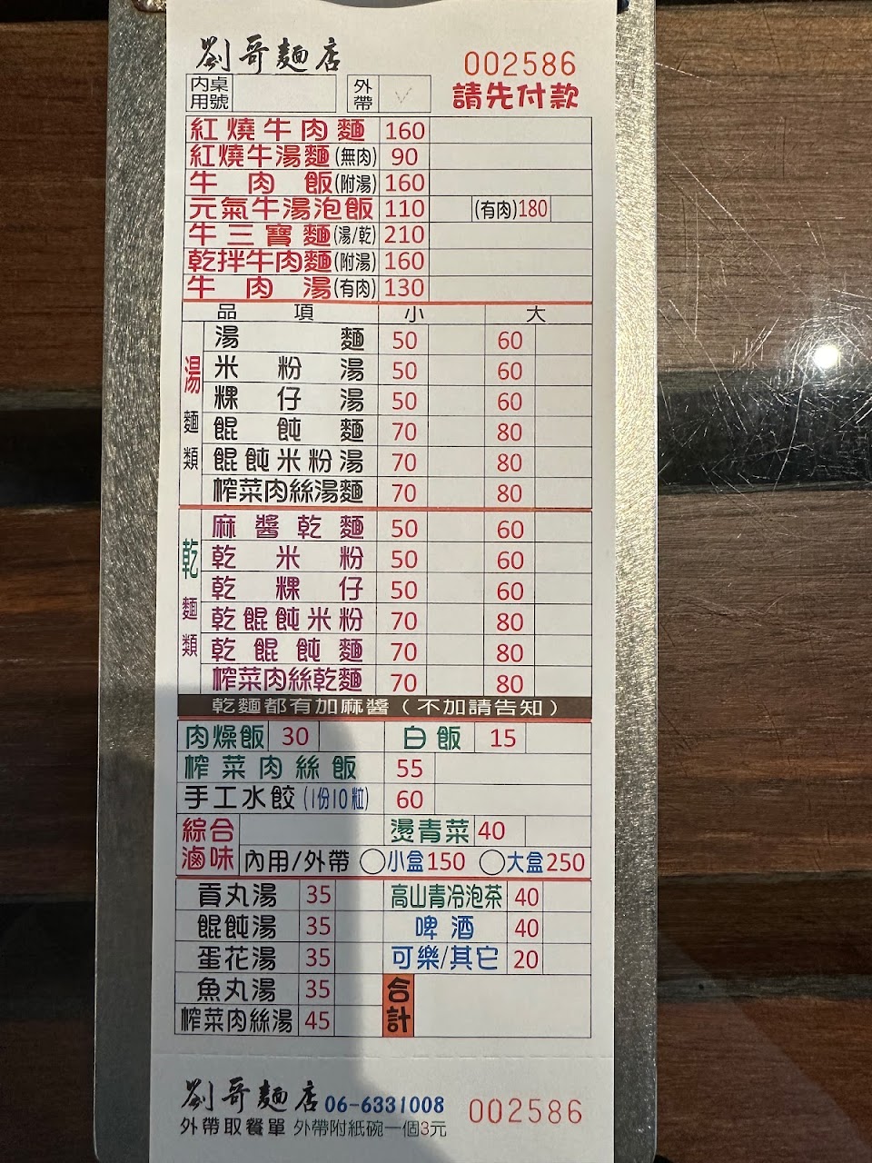 2024最新在地推薦餐廳的菜單_劉哥麵店-新營店的菜單、圖片