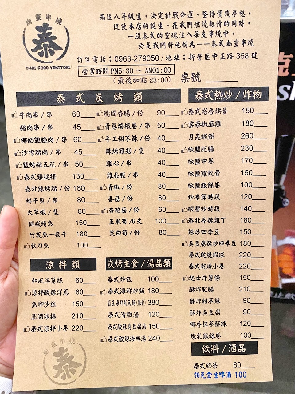 2024最新在地推薦餐廳的菜單_泰式幽靈串燒-新營店(人手不足,敬請見諒)的菜單、圖片