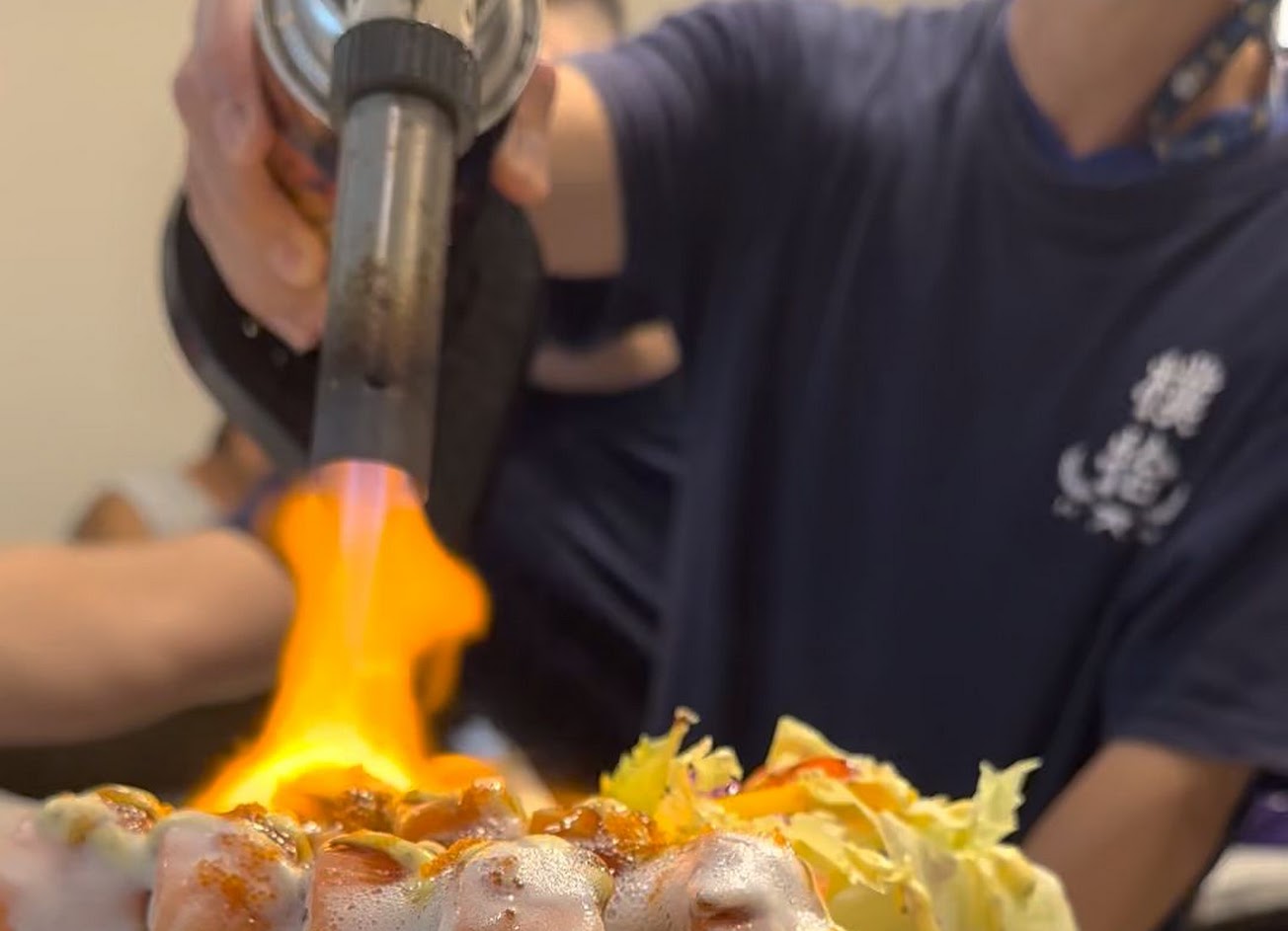 招牌火焰鮭魚捲炙燒過的