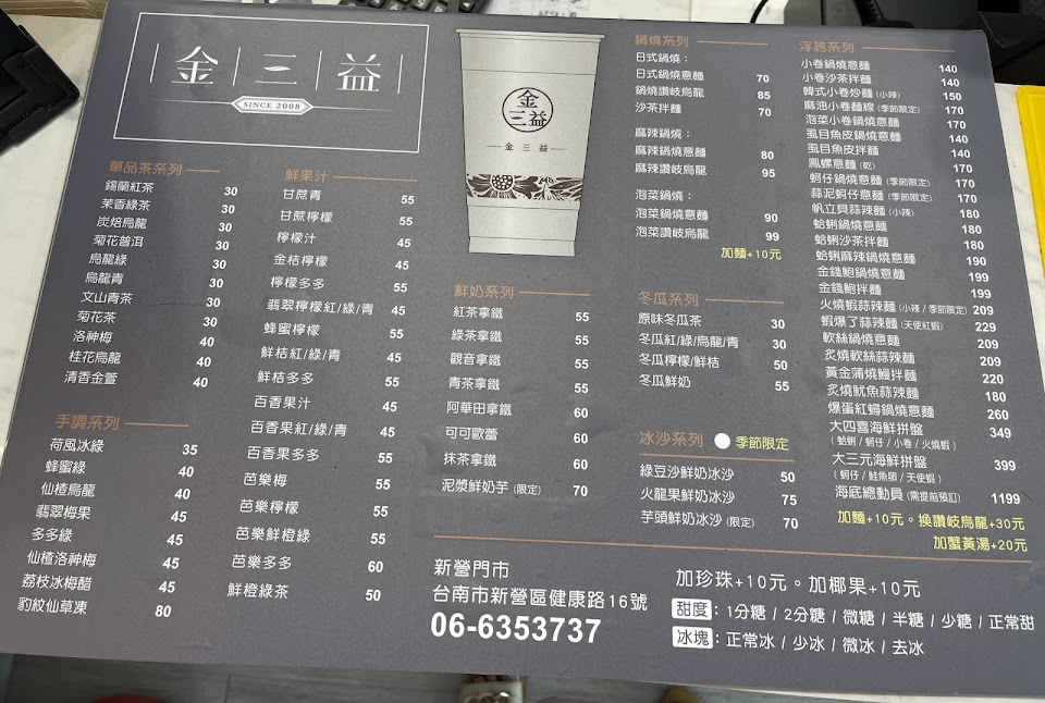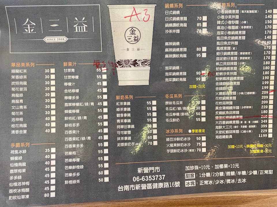 2024最新在地推薦餐廳的菜單_金三益-新營健康店的菜單、圖片