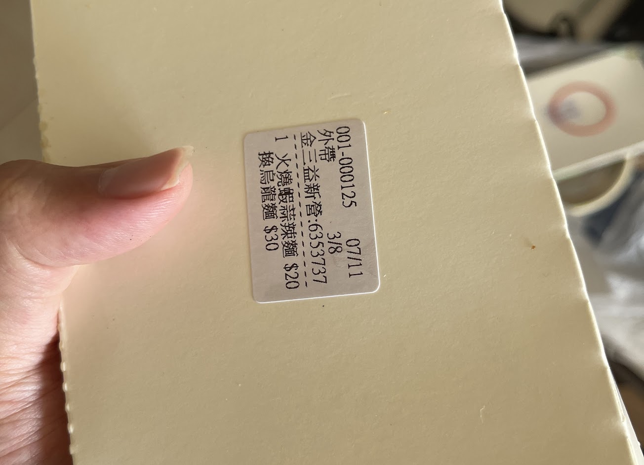 我走過去只看到一桶未開的餐盒,也沒看到塑膠帶,於是打開拿了一個餐盒,剛好B小姐從廚房走了出來!我又再詢問一次是這個嗎?