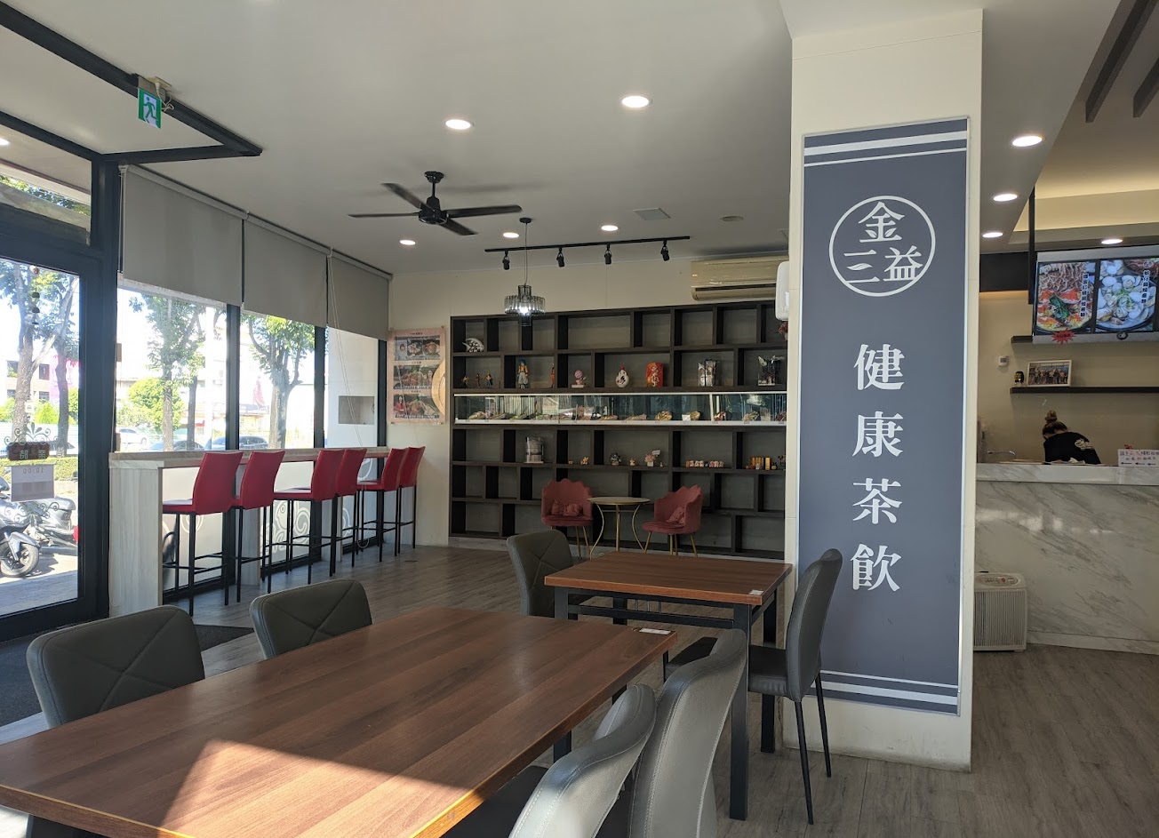 今天特地開了半小時的車程來(金三益)用餐,之前看了Facebook 和Instagram 的廣告就一直想來,到了之後店家有專屬的停車場,雖然被停滿了附近也還算蠻好停車的,停好車後進到店裡,裡面裝潢和擺設讓人感到很舒服,座位距離也不會讓人感到擁擠不自在,接著走到櫃檯,櫃檯人員就詢問需要內用還是外帶,然後告知內用拿著菜單找座位坐下接著點餐,點了一杯炭培烏龍30元和今天的主餐:大三元海鮮拼盤(小辣)蚵仔/鮭魚卵/火燒蝦379元,然後到櫃檯結帳櫃檯人員有告知吃完請自己回收餐盤,服務態度還算不錯,會到座位很快的飲料就來了,這效率還算不錯,滑一下手機餐點也就到了,用餐感覺食材算蠻新鮮的,唯一缺點就是蚵仔在清洗需要再花一些時間清洗,可以試試太白粉清洗看看,不然如果小孩吃到會比較麻煩,畢竟蚵仔殼滿鋒利的!
