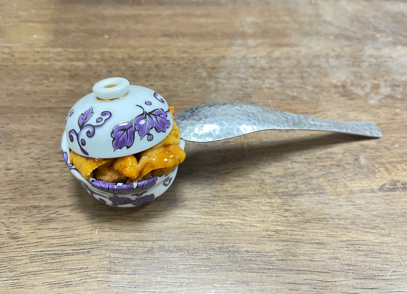 牛肉卷壽司也很好吃,但是這次有點海膽,老闆推薦把海膽配壽司一起吃能更提升牛肉的美味,照著這樣吃了後,剩下沒有可以搭配的壽司顯得遜色不少,所以,一定要點海膽來搭配牛肉卷壽司?