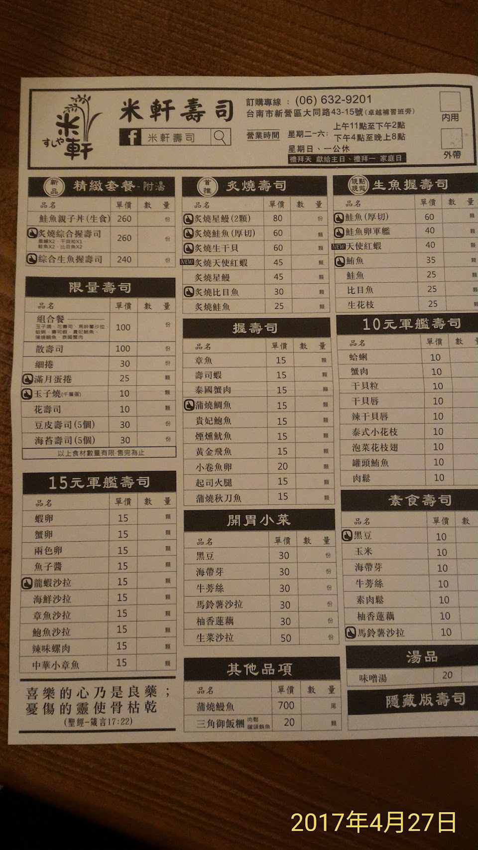 2024最新在地推薦餐廳的菜單_米軒壽司 Mi-Xuan Sushi House的菜單、圖片