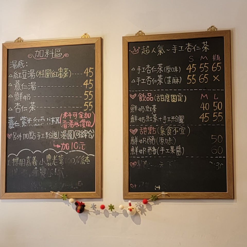 小巧溫馨的甜湯專賣店,選項並不多,但樣樣都用心製作,甜湯也不會過於甜膩,非常符合現代人的口味,店內位置不多,常常遇到客滿的盛況,大推他們家的杏仁茶,是我唯一敢喝的杏仁茶,沒有奇怪的化學味,淡淡的杏仁香,跟外面市售的完全不同,推薦大家可以試試。