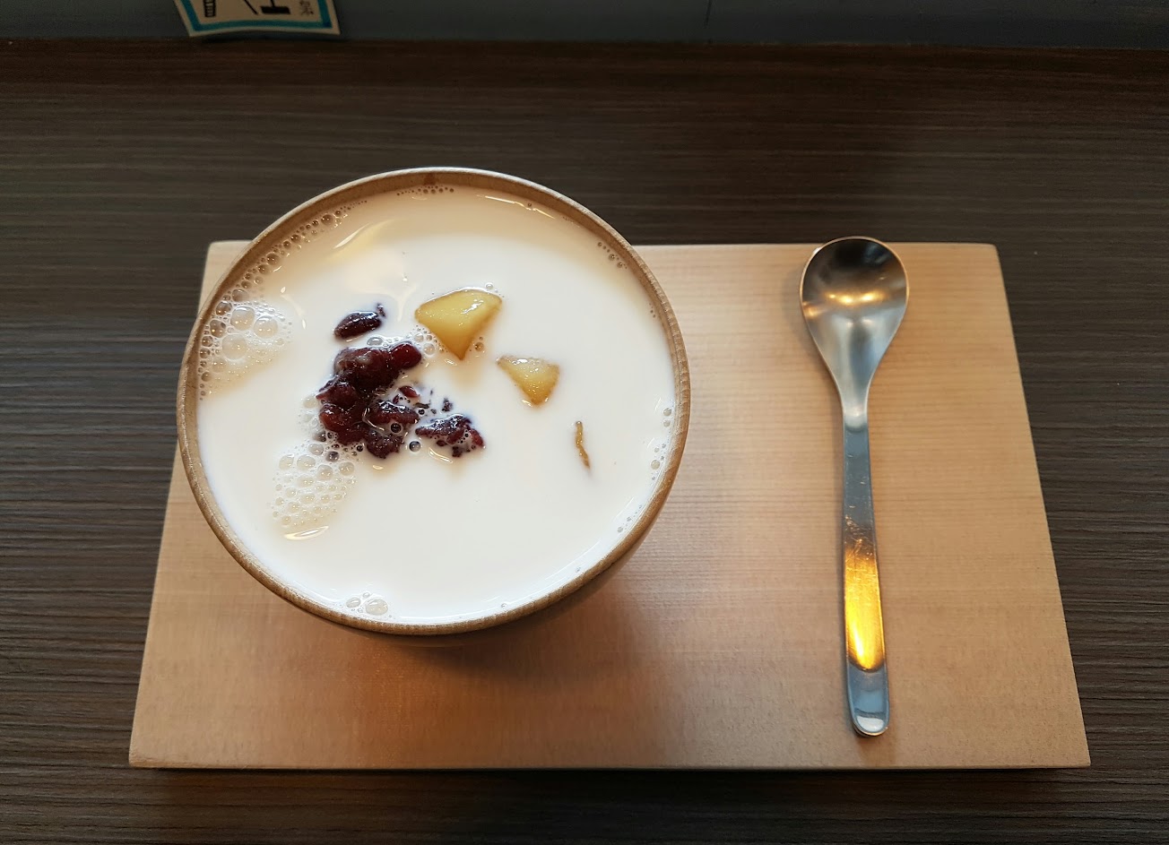 紅豆湯濃鬱、杏仁茶香醇,紅豆湯加湯圓加粉圓,加紫米加薏仁更豐富了口感,杏仁茶加芝麻更添芝麻香氣,環境氛圍舒適、整潔、明亮,老闆小夫妻態度更是親切喔!