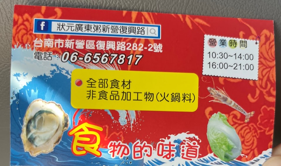 2024最新在地推薦餐廳的菜單_狀元廣東粥-新營復興路的菜單、圖片