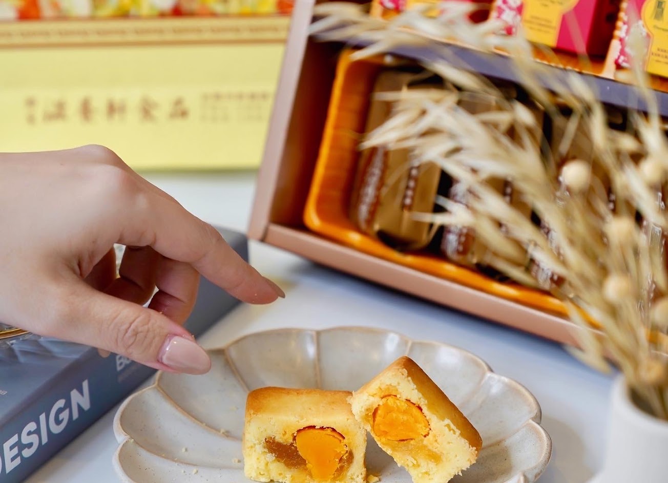 切開後有著紮實又飽滿的內餡,外層酥香餅皮,軟嫩細緻的綠豆沙餡,完全是老少咸宜呀~ #蛋黃酥 內含整顆紅土鹹鴨蛋黃,完全真材實料!鹹蛋黃與烏豆沙內餡的搭配吃起來鹹甜,整體吃起來也不會很乾!