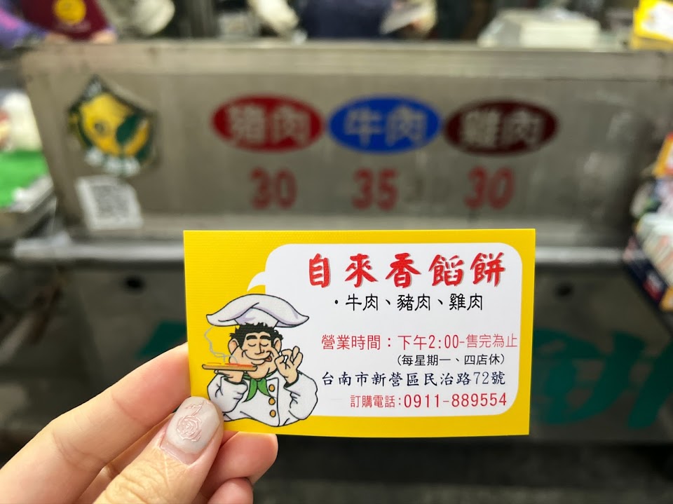 新營開立很久的下午茶點心,有豬肉30、牛肉35、雞肉30,建議先電話訂購再到現場拿,不然光等候時間可能就要10~15分。