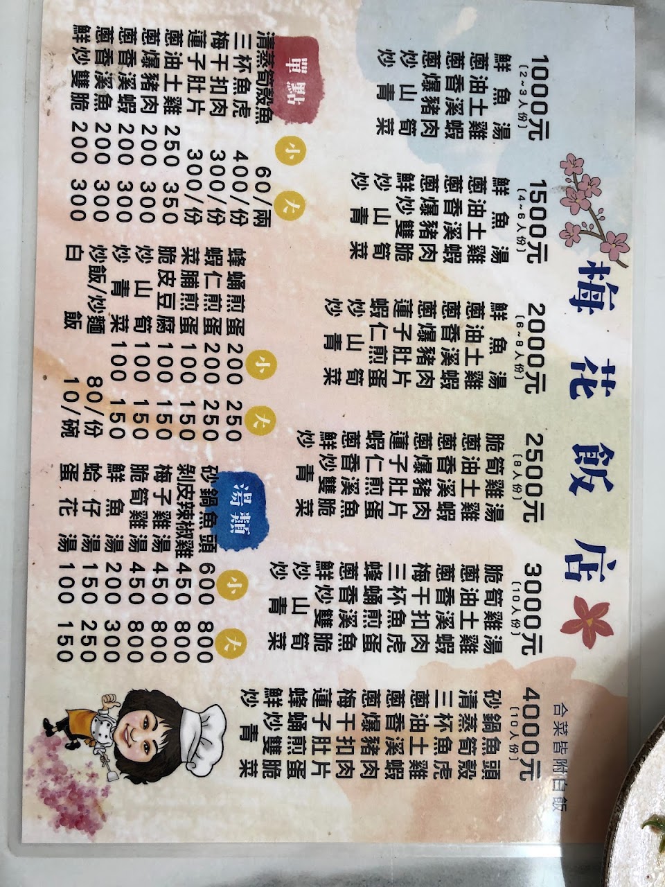 五菜一湯四碗飯…1000元…三大一小吃好飽…味道還不錯!