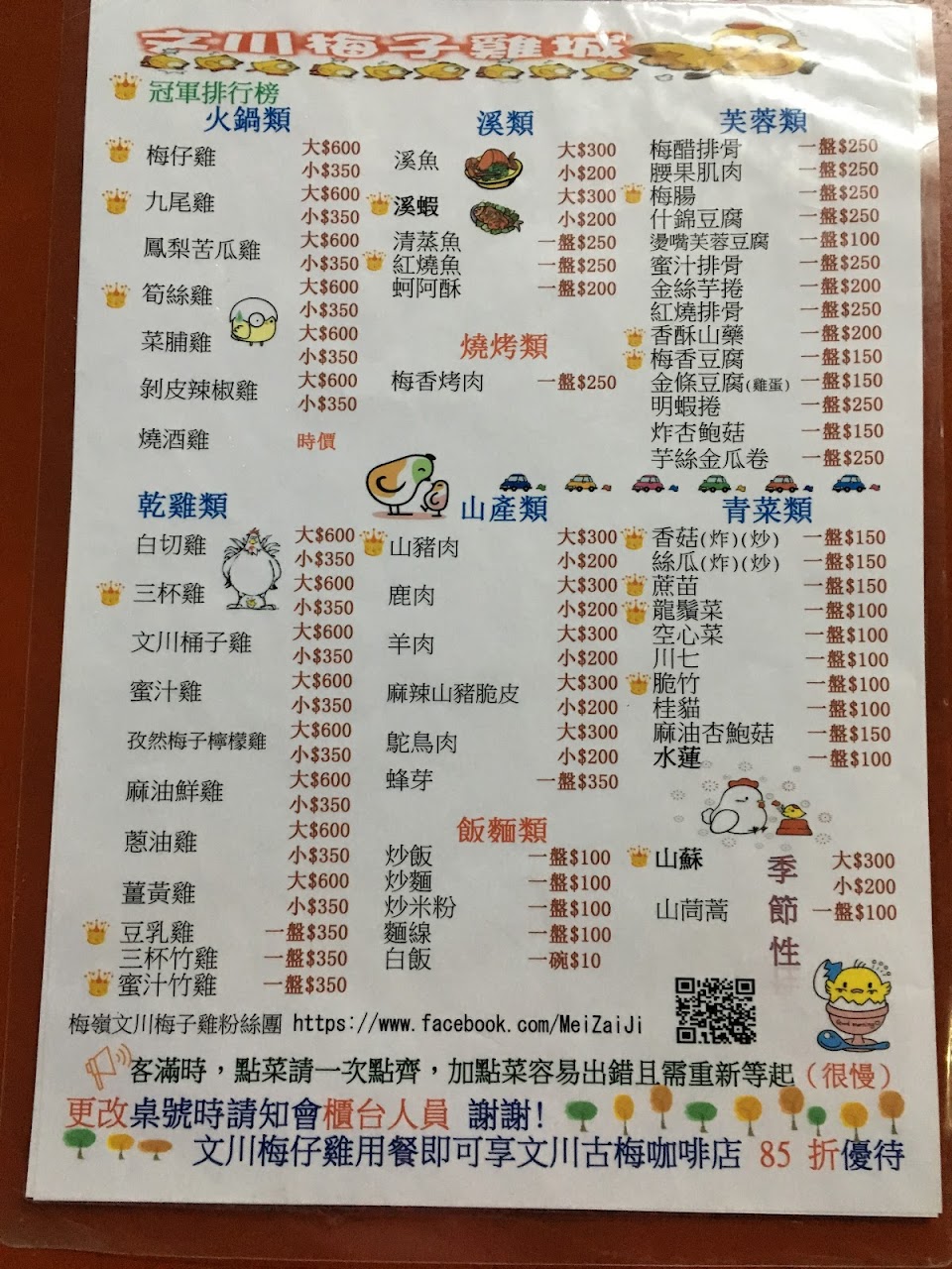 2024最新在地推薦餐廳的菜單_文川梅子雞城的菜單、圖片