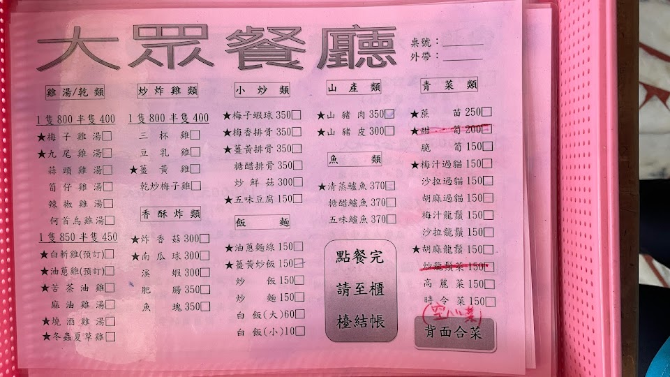2024最新在地推薦餐廳的菜單_大眾餐飲的菜單、圖片