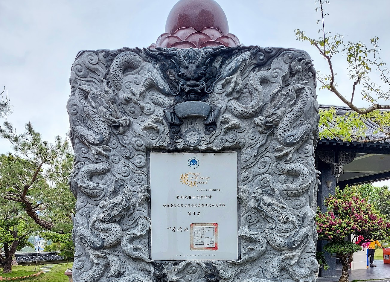 大智圓輪前面則有印著佛家偈語的巨石 在在提醒人們別忘了要時時保持善念? 據說巨石重152噸、高4米7、長10米4 厚1.2米,是玄空法寺的鎮寺之寶! 也是目前全台灣寺廟最大塊的石頭?