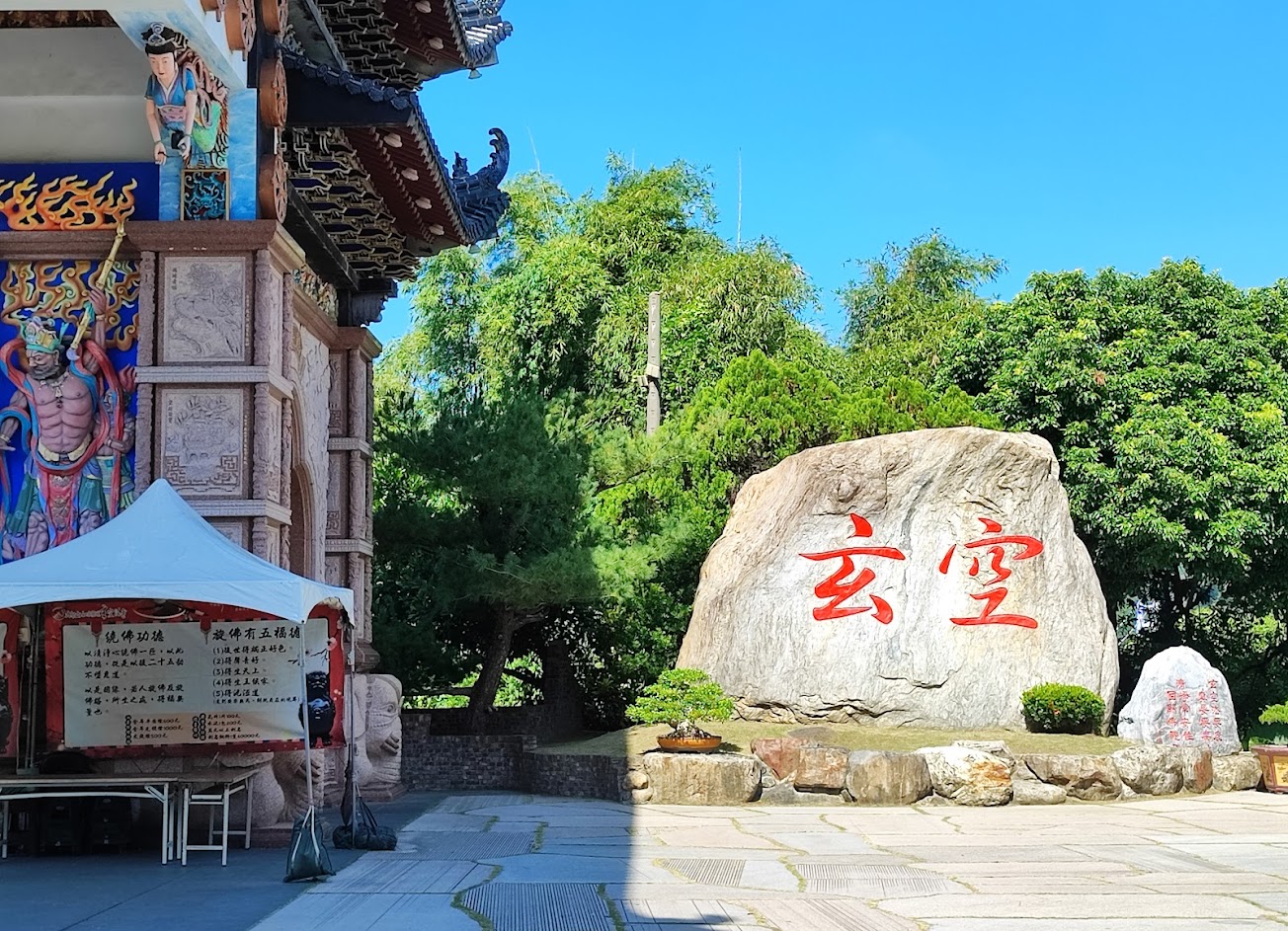 景點 ,花 ,樹 ,石材 ,玄空法寺 ,很宏偉 ,靈靜 ,可以代表台南一日遊景點