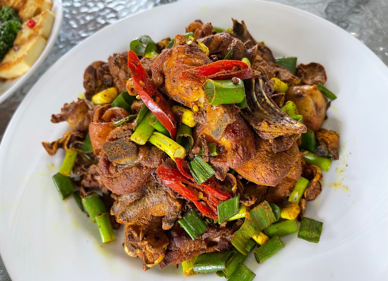 薑黃雞更是推薦,煸得薑片像餅乾酥脆