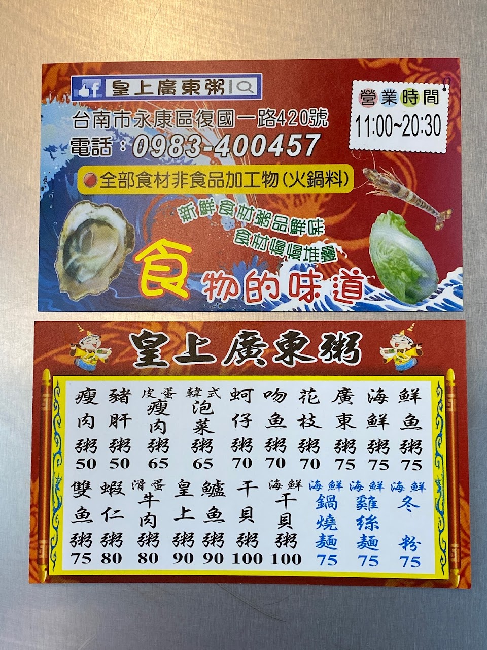 2024最新在地推薦餐廳的菜單_皇上廣東粥的菜單、圖片