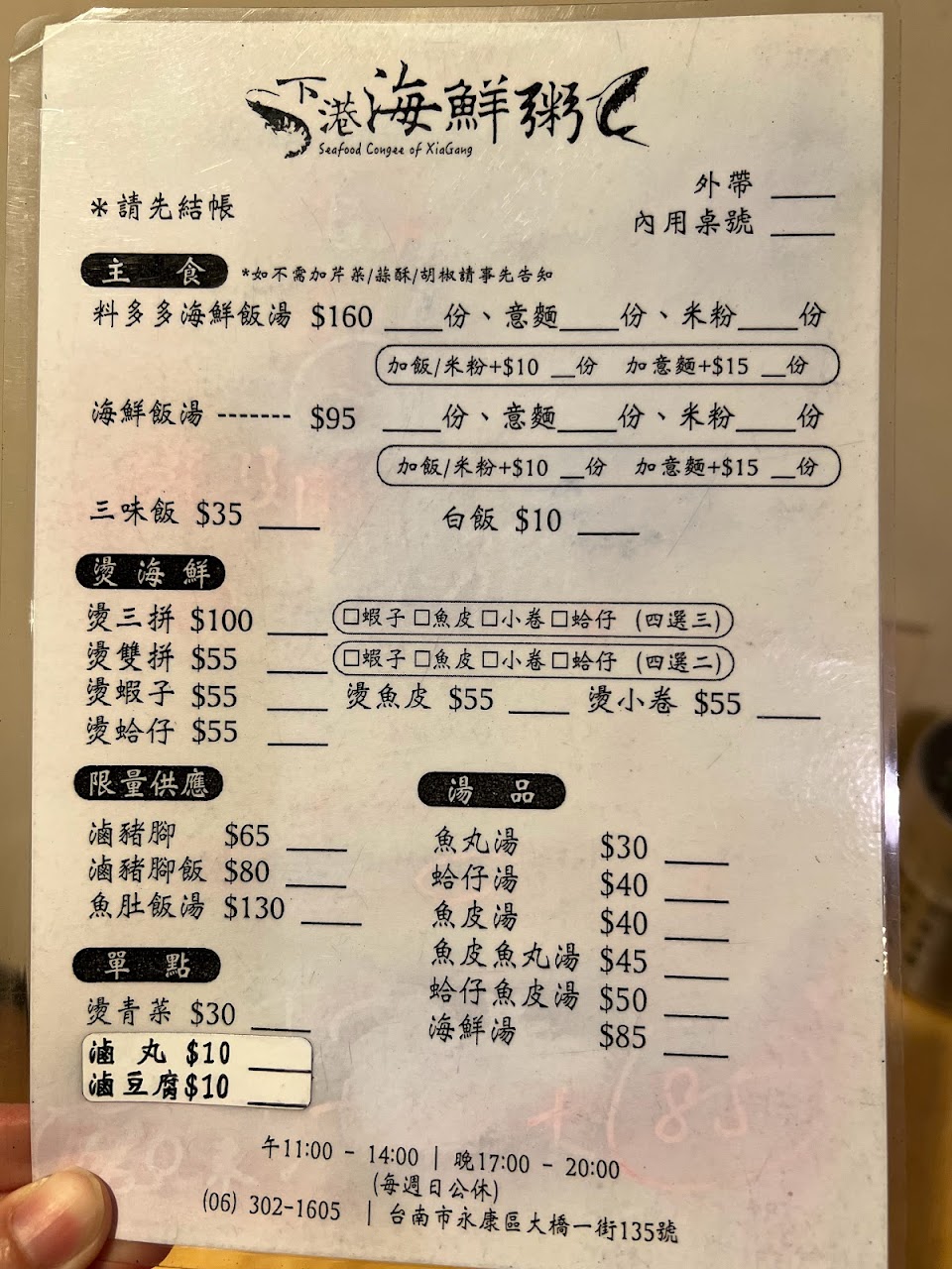 2024最新在地推薦餐廳的菜單_下港海鮮粥的菜單、圖片