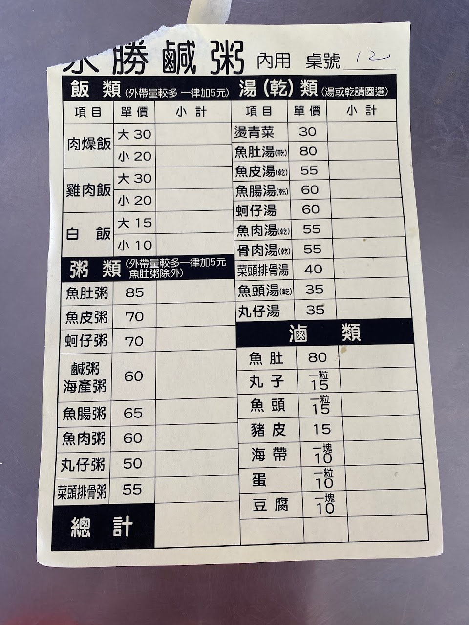 我認為永勝是台南前三名的鹹粥,魚肉湯CP值激高!