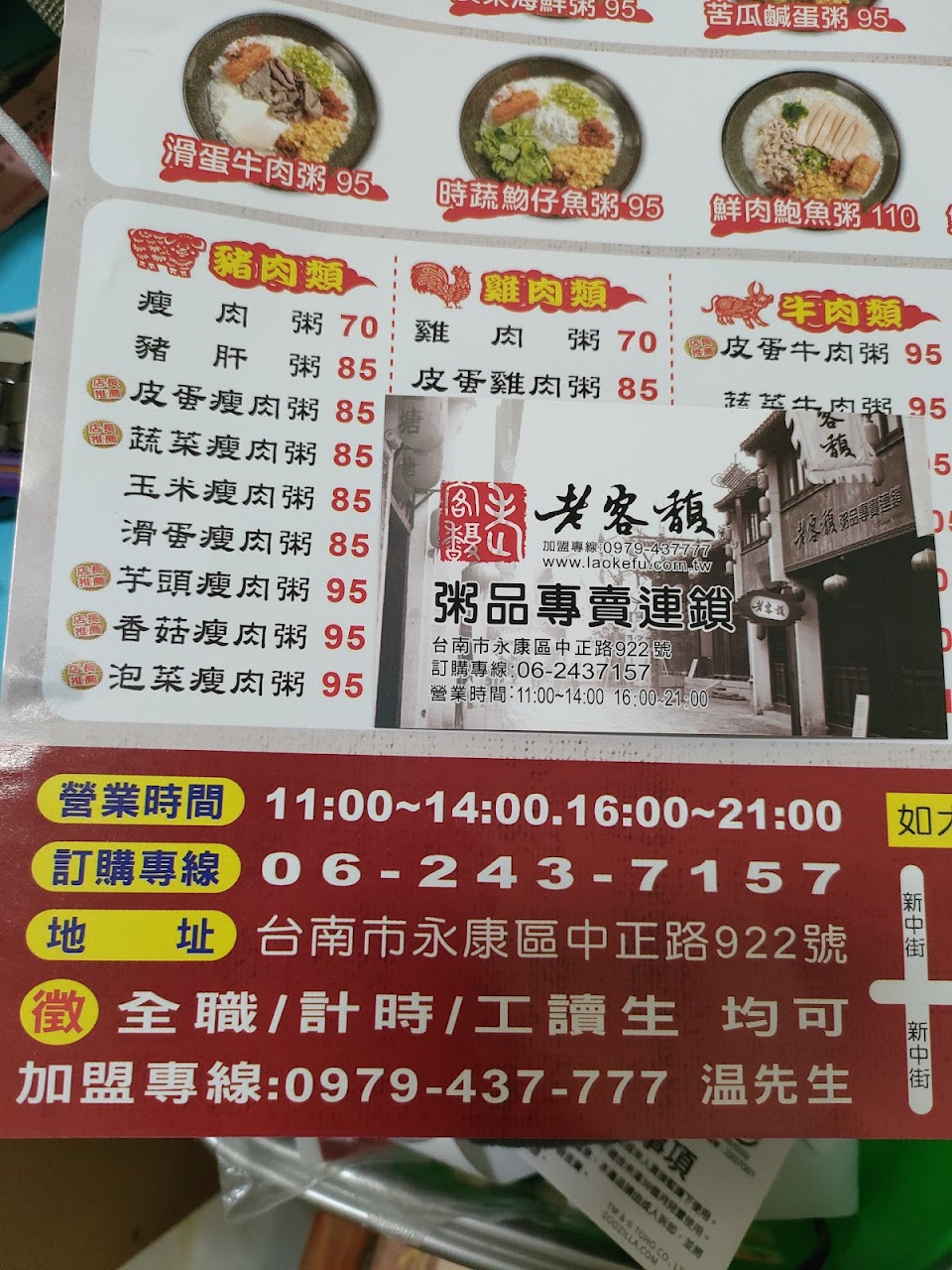 2024最新在地推薦餐廳的菜單_老客馥粥品專賣連鎖的菜單、圖片
